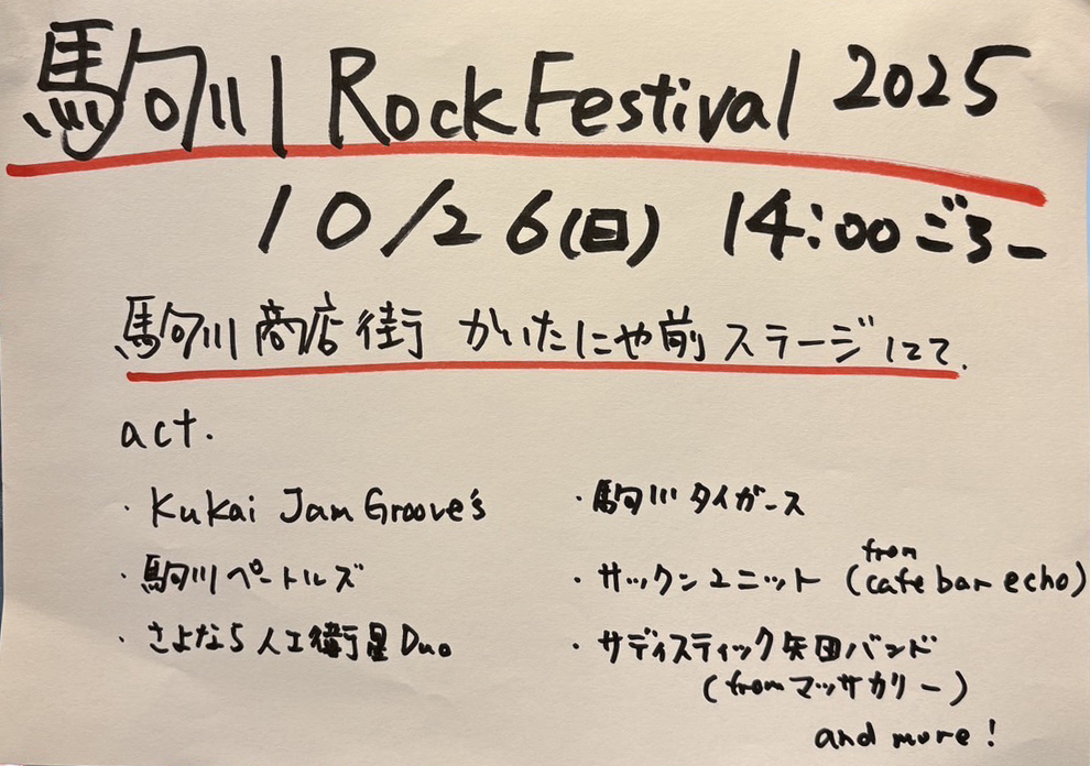 | 2025年10月26日(日) 駒川Rock Festival 2025 | |
